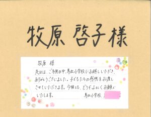 『"青い鳥"とまり木』プロジェクトtomarigi project ~~~これまでの活動~~~ 2025.04.10 5年ぶりの『夢授業』再会 – 馬出小学校2020年3月卒業生 2025.03.31 第15回夢授業 2025.3.4 馬出小学校 – ②卒業する生徒さんから贈られた言葉 2025.03.10 第15回夢授業 2025.3.4 馬出小学校 – ①卒業する生徒さん全員へ贈ったメッ セージ 2024.10.31 第14回夢授業 2024.10.16 馬出小学校 2024.03.10 第13回夢授業 2024.2.29 馬出小学校 – ②卒業する生徒さんから贈られた言葉 2024.03.31 第13回夢授業 2024.2.29 馬出小学校 – ①卒業する生徒さん全員へ贈ったメッ セージ 2023.10.31 第12回 夢授業 2023.10.11 馬出小学校 2023.03.31 第11回夢授業 2023.3.10 馬出小学校 – ②卒業する生徒さんから贈られた言葉 2023.03.15 第11回夢授業 2023.3.10 馬出小学校 – ①卒業する生徒さん全員へ贈ったメッ セージ 2022.11.30 第10回夢授業 2022.11.9 馬出小学校 2022.03.31 第9回夢授業 2022.3.14 馬出小学校 – ②卒業する生徒さんから贈られた言葉 2022.03.16 第9回夢授業 2022.3.14 馬出小学校 – ①卒業する生徒さん全員へ贈ったメッ セージ 2021.10.31 第8回夢授業 2021.10.13 馬出小学校 2021.03.31 第7回夢授業 2021.3.12 馬出小学校 – ②卒業する生徒さんから贈られた言葉 2021.03.15 第7回夢授業 2021.3.12 馬出小学校 – ①卒業する生徒さん全員へ贈ったメッ セージ 2020.12.31 第6回夢授業 2020.12.11 馬出小学校 2020.03.15 第5回夢授業 2020.3.9 馬出小学校 – 卒業する生徒さん全員へ贈ったメッ セージ 2019.11.30 第4回夢授業 2019.11.18 馬出小学校 2019.03.15 第3回夢授業 2019.3.11 馬出小学校 – 卒業する生徒さん全員へ贈ったメッ セージ 2018.11.30 第2回夢授業 2018.11.22 馬出小学校 2018.03.15 第1回夢授業 2018.3.13 東光小学校 ご来店予約 店舗情報 直筆・写真刻印 とまり木プロジェクト メールで来店予約 店舗にTEL
